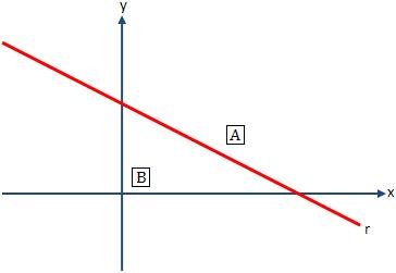 ⇔ a . x + b . y + c < 0 (ou a . x + b . y + c > 0) (desconsiderando os pontos de r)