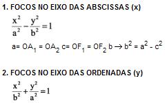 É lugar geométrico dos pontos P (x, y) de um plano tal que a diferença (em módulo) de suas distâncias a dois pontos fixos F1 e F2 é constante (2a < 2c), com .
