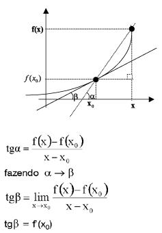 y = f(x) no ponto de coordenadas (x0 ; y0) é o coeficiente angular da reta tangente à curva obtida pela função dada neste ponto, ou seja,