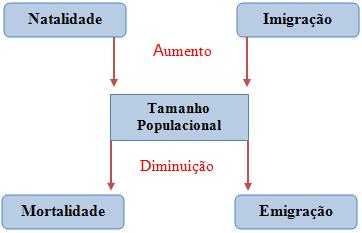Os determinantes do tamanho populacional são divididos em quatro fatores: