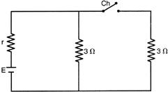 Um gerador está ligado como indica a figura. Com a chave Ch aberta, a corrente que o atravessa é de 10A; com a chave fechada, a corrente passa a ser de 16A. Determine a resistência interna r e a fem E do gerador.