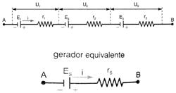 Os geradores podem ser associados para melhor aproveitamento das suas características de resistência interna e de força eletromotriz.