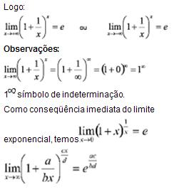 Dada a função ,à medida que x tende ao infinito, a imagem de f tende ao número 2,7182818….., também conhecido por número de Euler, ou seja x , então f(x) 2,7182818….. O número 2,7182818…. é um número irracional, que é a base dos logaritmos neperianos. Sua representação é a letra e, ou seja, e = 2, 7182818…