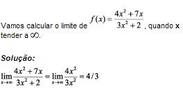 b) Se o grau do numerador for igual ao grau do denominador, basta dividir os coeficientes dos termos de maior grau.