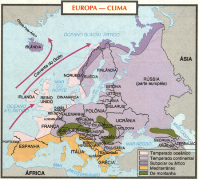 Como você pode observar no mapa acima, o clima temperado predomina o continente europeu.