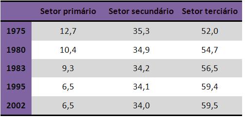 Nota: De acordo com as atividades economicas de uma população ativa, podemos definir três setores no país: