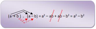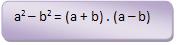 A diferença entre dois quadrados (a2 – b2) é igual ao produto da soma (a + b) pela diferença (a – b).