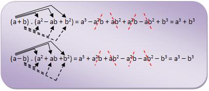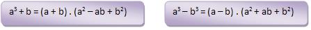 A soma de dois cubos é igual ao produto do fator a + b pelo fator a2 – ab + b2.
