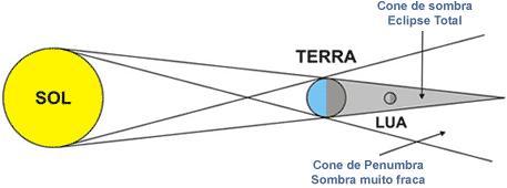 Eclipses Por Redação01/06/2012 às 10:50 Eclipses Quando a Lua estiver completamente imersa no cone de sombra da Terra, irá ocorrer um eclipse total, já se a Lua “interromper” parcialmente o cone, ocorrerá um eclipse parcial.
