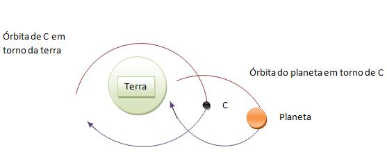 Ele foi o criador da tese que dizia que a Terra era o centro do Universo, e isso foi considerado um sistema planetário, denominado geocêntrico. Esse sistema foi considerado um sistema incerto, pois todos os planetas (individualmente), cria uma órbita circular em volta de um centro representado por C, onde esse centro traçava uma órbita circular em volta da Terra. |