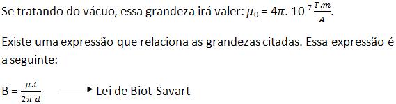 O módulo do vetor indução magnética B, é totalmente dependente da intensidade da corrente (i) no condutor, é dependente também da distância d do ponto P do condutor, e do meio que o engloba. Esse meio é caracteriza- se através de uma grandeza física escalar chamada de permeabilidade magnética do meio (μ).