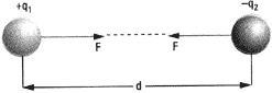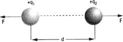 Considere duas cargas elétricas puntiformes, Q1 e Q2 , separadas pela distância d. Se os sinais dessas cargas forem iguais, elas se repelem; se forem diferentes, se atraem.