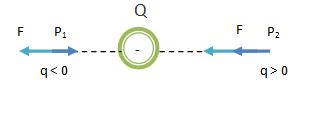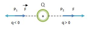 1) Quando a carga criadora do campo for positiva, o campo elétrico produzido será de afastamento, como pode ser verificado pela colocação de cargas de prova de sinais diferentes nos pontos P1 e P2.