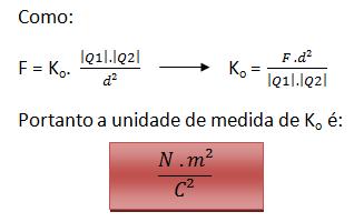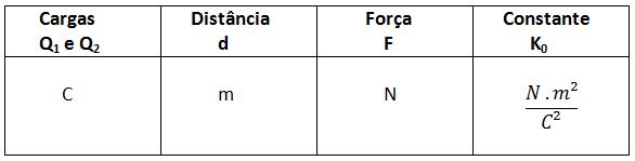 Como vimos anteriormente, as cargas elétricas são medidas em Coulomb (C), já a distância é medida em metros (m) e a força como também já vimos anteriormente, é medida em Newton (N).