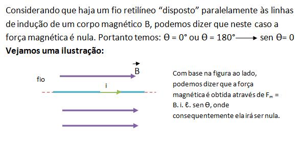 Considerando que a força magnética possui uma direção ortogonal às linhas de indução de um campo, podemos dizer que ela também é perpendicular ao seu fio retilíneo.