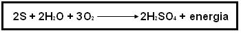 2º) O enxofre também passa por uma oxidação com água, dando origem ao ácido sulfúrico e libera energia: