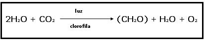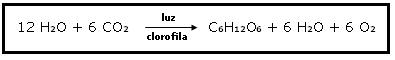 Com a soma das duas reações observadas acima, obtemos a equação simplificada da fotossíntese.