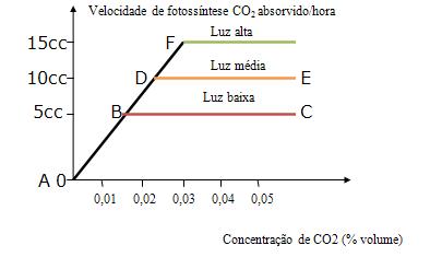 Na linha AB, a concentração de CO2 é o fator limitante, e na parte BC, é a luz.