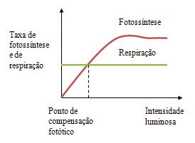 Para determinar o ponto de compensação luminoso da planta, deve ser feito uma analogia correspondente a intensidade da luz da respiração e da fotossíntese.