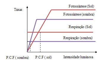 As plantas com o ponto de compensação luminoso alto são chamadas de umbrófilas. E as plantas com o ponto de compensação baixo são chamadas de heliófilas.