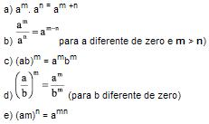 Dados a e b reais e m e n naturais, as seguintes propriedades são válidas: