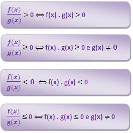 Desse modo, se for preciso, a inequação do “tipo” quociente, pode ser modificada para inequação equivalente do “tipo” produto.