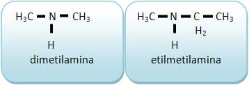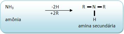 As aminas secundárias derivam do NH3 através da substituição de 2H por dois radicais derivados de hidrocarboneto.