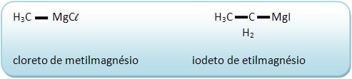Nomenclatura dos compostos de Grignard Por Redação01/06/2012 às 10:24 15- Nomenclatura dos compostos de Grignards É utilizado a palavra haleto (cloreto, brometo ou iodeto), e logo depois o nome do grupo derivado do hidrocarboneto e a palavra magnésio. Vejamos: