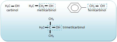 Kolbe exibe uma nomenclatura que leva em conta os alcoóis derivados do metanol, ao qual se denominou carbinol.