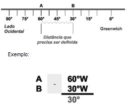 PRIMEIRO CASO – Se os dois lugares estiverem no mesmo hemisfério, devemos subtrair a longitude maior da longitude menor, por exemplo: