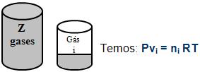 A partir da mistura de Z gases anteriores, onde o volume que o gás i ocupa na pressão P e temperatura T, onde o volume vi é o volume parcial do gás i.