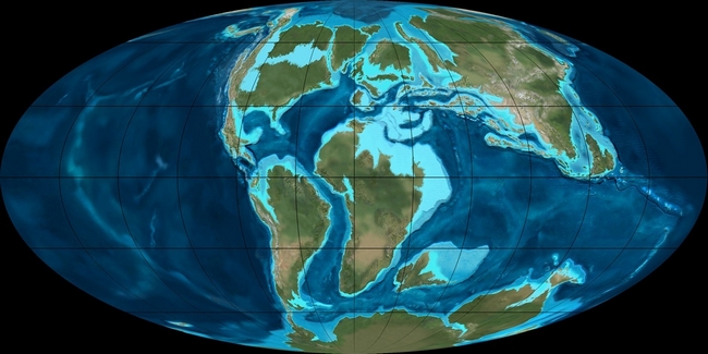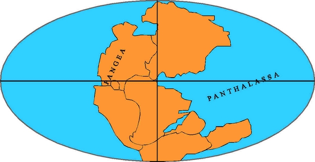 O grande supercontinente teria permitido que os animais terrestres emigrassem livremente desde o Pólo Sul ao Pólo Norte. O extenso oceano que rodeava a Pangeia recebeu o nome de Pantalassa.