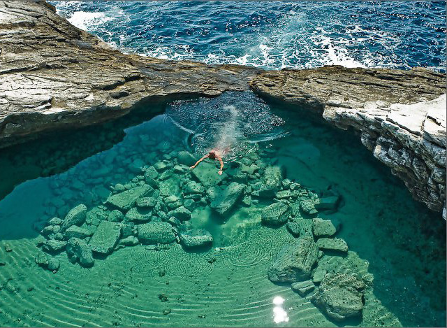 A Grécia por si só já é um destino para lá de surpreendente. Com seus belos pontos turísticos, você ainda pode mergulhar em uma piscina natural incrível, que fica na Ilha de Thassos, localizada próxima à costa da Macedônia. O local ao seu redor é totalmente esculpido em rochas e possui uma água cristalina que vem diretamente do mar Egeu. Se você estiver fazendo uma viagem pela Grécia, não pode deixar de aproveitar e visitar a ilha. Tenho certeza que você não vai se arrepender.