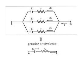 b) a f.e.m da associação é igual àquela de cada um dos geradores associados: Ep = E
