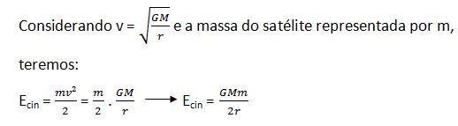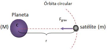 Considerando a massa de um planeta representado por M, o raio da órbita representado por r e a constante gravitacional representada por G, temos que a essa força gravitacional aplicada no satélite pelo planeta, irá realizar o papel de uma resultante centrípeta, vejamos: