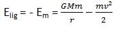 É importante sabermos que essa energia de ligação numericamente é a mesma que a energia mecânica do corpo adotado, porém com o sinal trocado, ou seja: