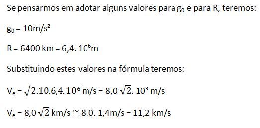 Com relação à velocidade escalar mínima de lançamento, podemos dizer que para um corpo se “livrar” de um campo gravitacional ele deverá possuir uma velocidade de escape representada por ve, que é dada através de: