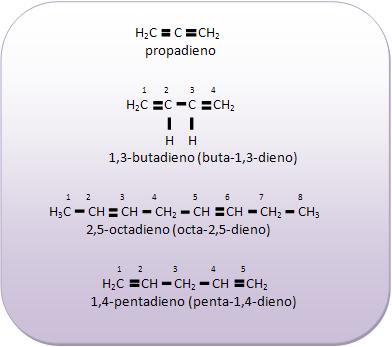 O sufixo dieno mostra que há duas duplas-ligações e os números indicam as posições das ligações.