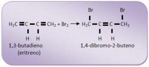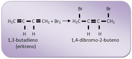 3) Adição dos átomos ou radicais aos átomos de carbono 1 e 4.