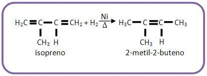 Os alcadienos irão reagir com as mesmas substâncias que os alcenos reagem, a única diferença entre eles estará nas duas duplas ligações.