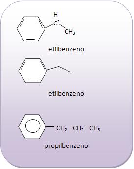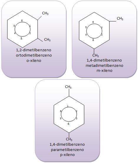 No exemplo acima aparece o xileno, que são encontrados no alcatrão de hulha e usados como desinfetantes.