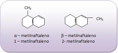 Todos os átomos de carbono que possuem número 1, 4, 5 e 8 são equivalentes e denominados carbono α (alfa).