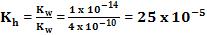 Visto que a constante de hidrólise é muito pequena, a quantidade em mols que hidrolisa (x) é suficientemente pequena, para que possamos fazer