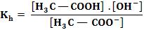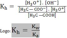 Desse modo, a constante de hidrólise para a reação de um ânion com a água é a relação entre o produto iônico da água e a constante de ionização do ácido fraco que se forma na reação.