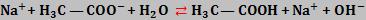 No entanto, atualmente esta equação não é escrita assim. O sal é composto iônico, e encontra-se dissociado em solução; o hidróxido de sódio (base forte) também apresenta-se dissociado; o ácido acético (ácido fraco) praticamente não está dissociado.