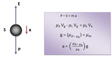 Para entendermos melhor sobre essa aceleração, vamos pensar em um sólido (S), que está em movimento, no interior de um líquido, sem interferir no equilíbrio (Lei de Arquimedes).