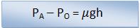 Onde, PA representa a pressão absoluta ou total existente no ponto A, Patm representa a pressão atmosférica existente no local e μgh representa a pressão hidrostática ou efetiva.