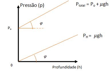 Portanto podemos quando há pressão no interior de um líquido, ela poderá aumentar linearmente com a sua profundidade.