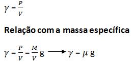 Um peso específico é considerado a razão existente entre a intensidade do seu peso e o volume ocupado.