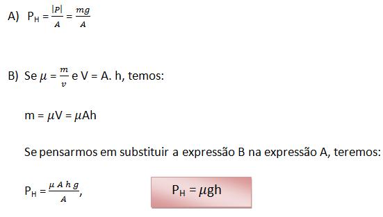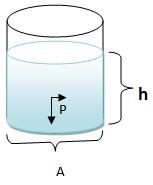 Para entendermos um pouco sobre a pressão hidrostática, vamos pensar em um recipiente cilíndrico, que possui uma área com uma base A, considerando que esse recipiente possua um líquido homogêneo, com uma densidade representada por (μ) em equilíbrio. Vejamos:
